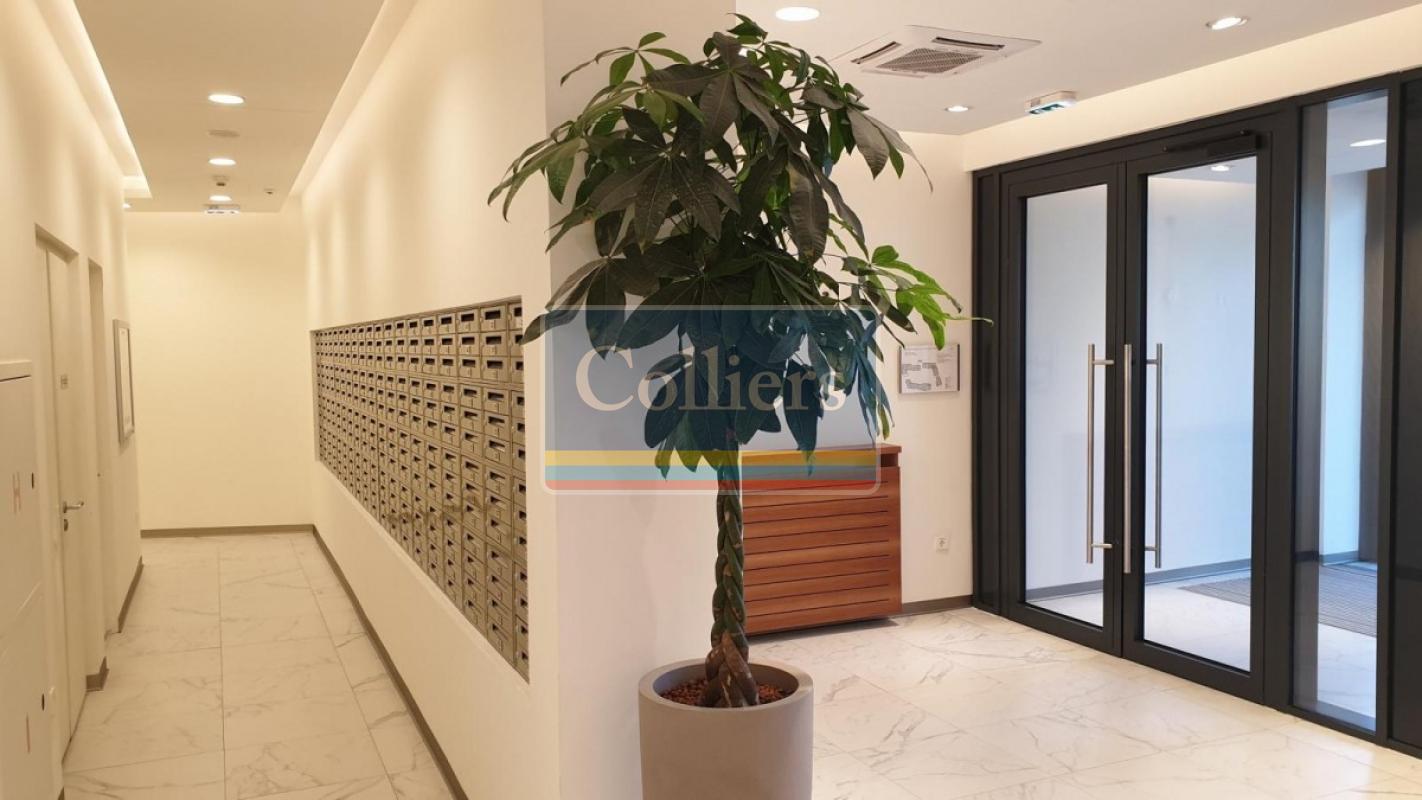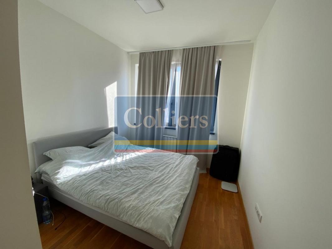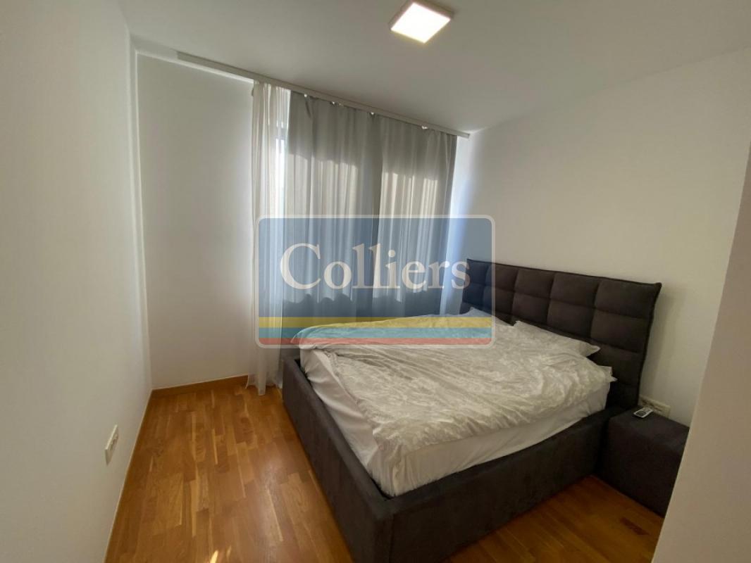 The apartment consists a living room connected to the kitchen, three bedrooms, two bathrooms, a terrace overlooking the city. The apartment is rented unfurnished, with appliances and kitchen elements. The rental price includes one parking space.