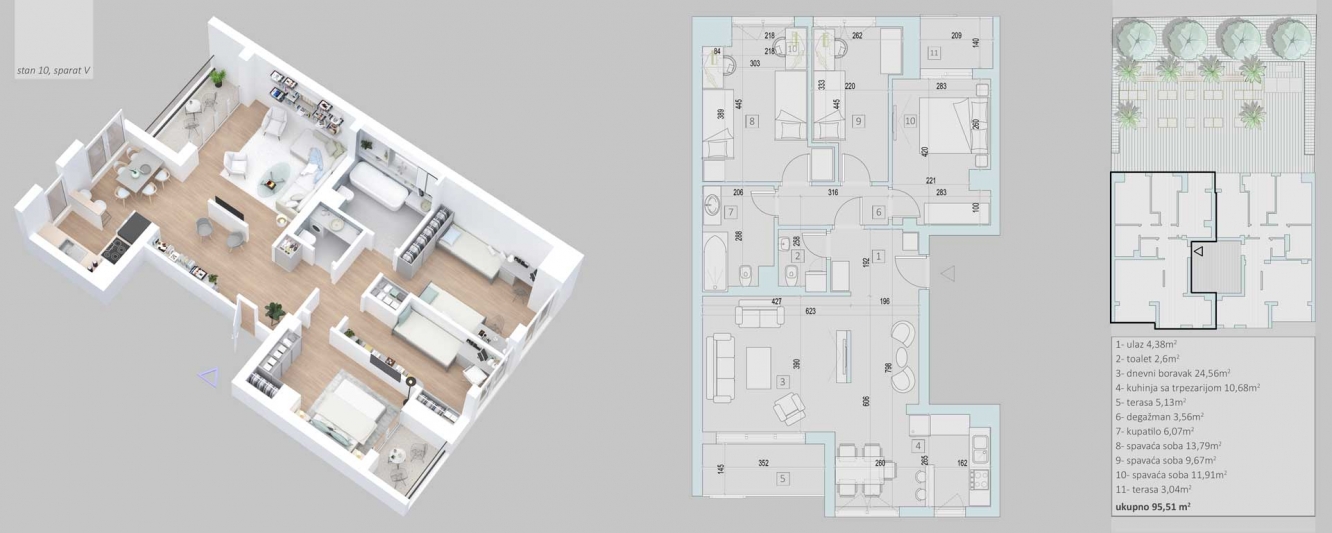 Two-bedroom, three-room and four-room apartments in the size of 48-95 m2