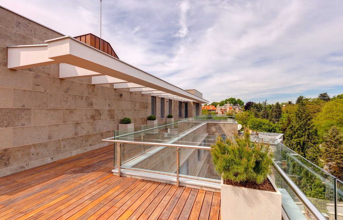 Stan u pametnoj kući sa energetskim pasošem sa svojim liftom i fasadom od 100% prirodnog kamena sadrži zidno i podno grejanje VRV klimatizaciju i nezavisni sistem izmene vazduha. Svaka soba ima svoje kupatilo i zasebnu termoregulaciju.Nemačku tehniku za kuhinje opremu za vodovod i kanalizaciju i kupatilske sanitarije prate podovi od italijanske keramike i prirodnog kamena. Done custom plakari i zidne obloge od drveta iznutra ograde terasa od inoksa sa kaljenim staklom spolja.Prozore i balkonska vrata sa trostrukim staklom za Pasivnu kuću uz austrijski okov i švajcarske spoljne žaluzine prati rasveta iz Belgije i Nemačke. Objekat je okružen unikatnim landscape dizajnom sa automastkom sistemom zalivanja i rasvete.