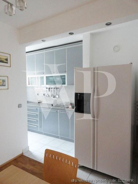 Stan je veoma prostran, lepo organizovan, poseduje dve spavaće sobe i veliki dnevni boravak sa kuhinjom i trpezarijom. Stan je kompletno opremljen. Pripadajuće parking mesto je u garži, u suterenu zgrade.