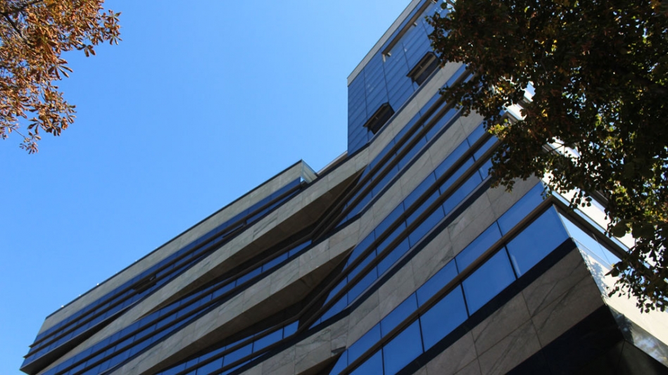 Fasada objekta je izrađena u kombinaciji staklenih i kamenih površina. Puni delovi fasade obloženi su granitom MOSS GREN i GOLDEN GREEN, dok su njeni stakleni delovi izrađeni tehnologijom strukturalnih fasada, a opremljeni su sistemima okova nemačkog proizvođača SCHUCO. Fasada je projektovana tako da je omogućena prirodna ventilacija unutrašnjih prostora.